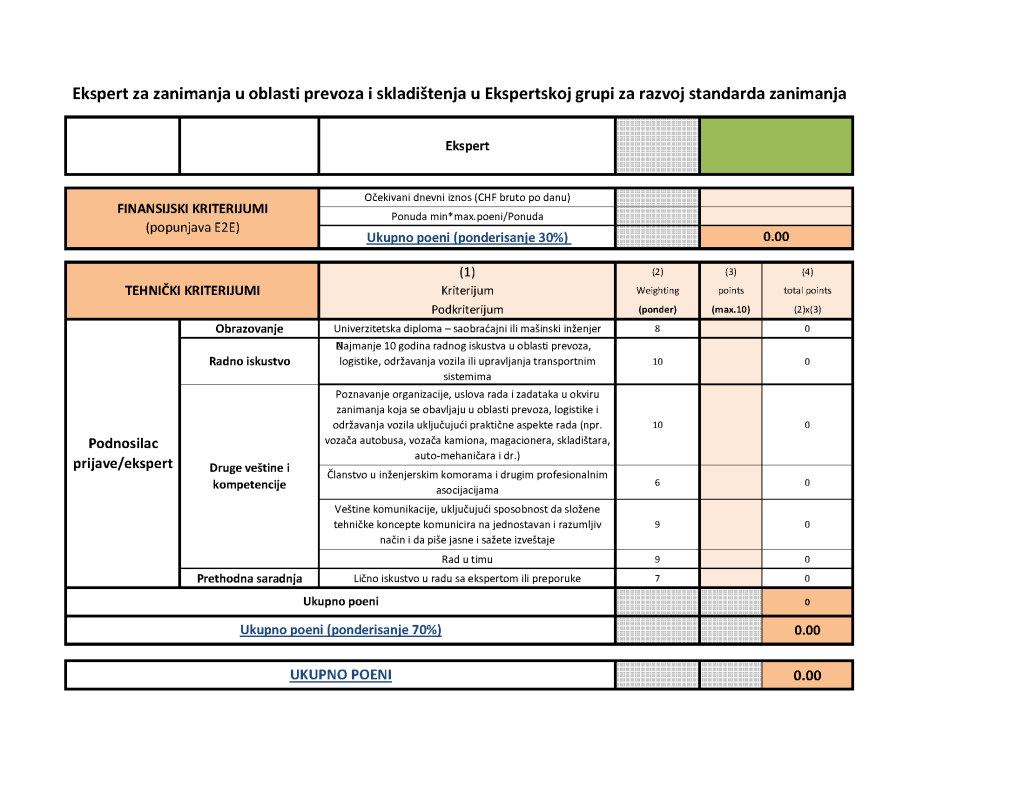 Poziv za eksperte: Ekspert za zanimanja u oblasti prevoza i skladištenja u Ekspertskoj grupi za razvoj standarda zanimanja
